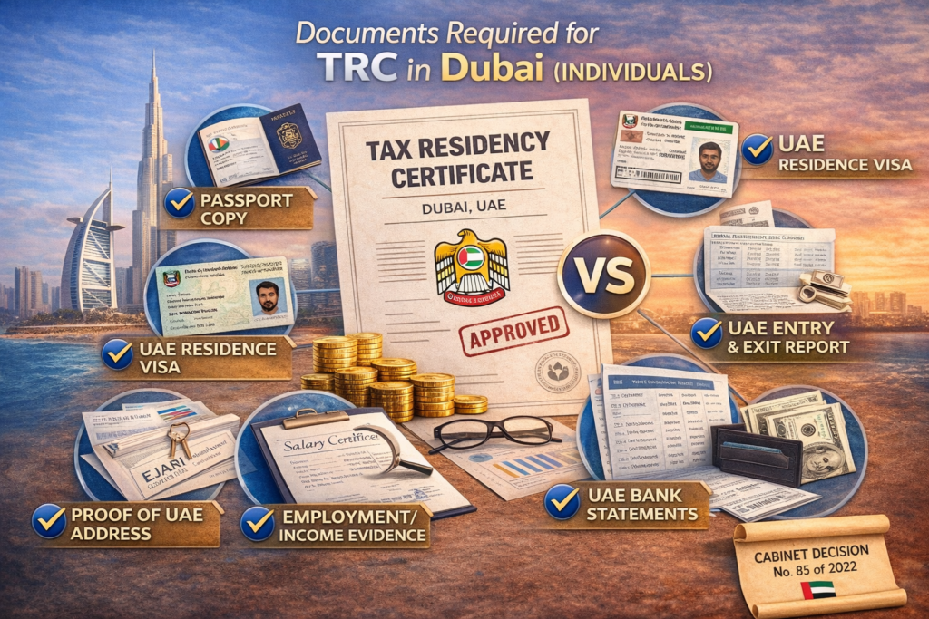 Individuals applying for a Tax Residency Certificate (TRC) in Dubai must submit a specific set of documents to the UAE Federal Tax Authority to verify their tax residency status. Proper documentation is the foundation of a successful TRC application — incomplete, inconsistent, or poorly prepared documents are among the most common reasons for delays and […]